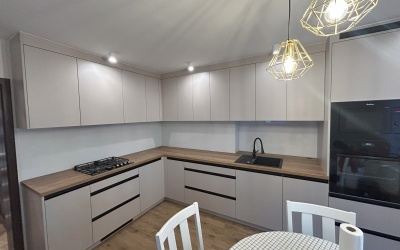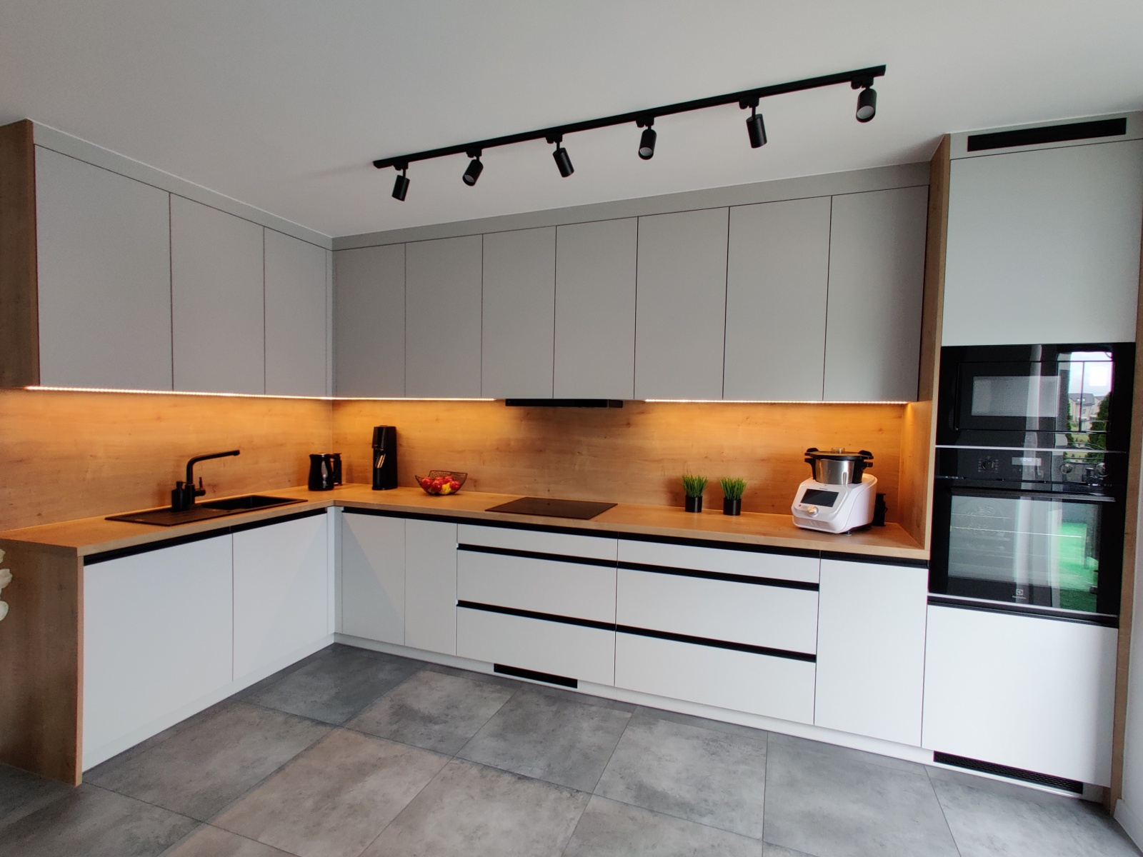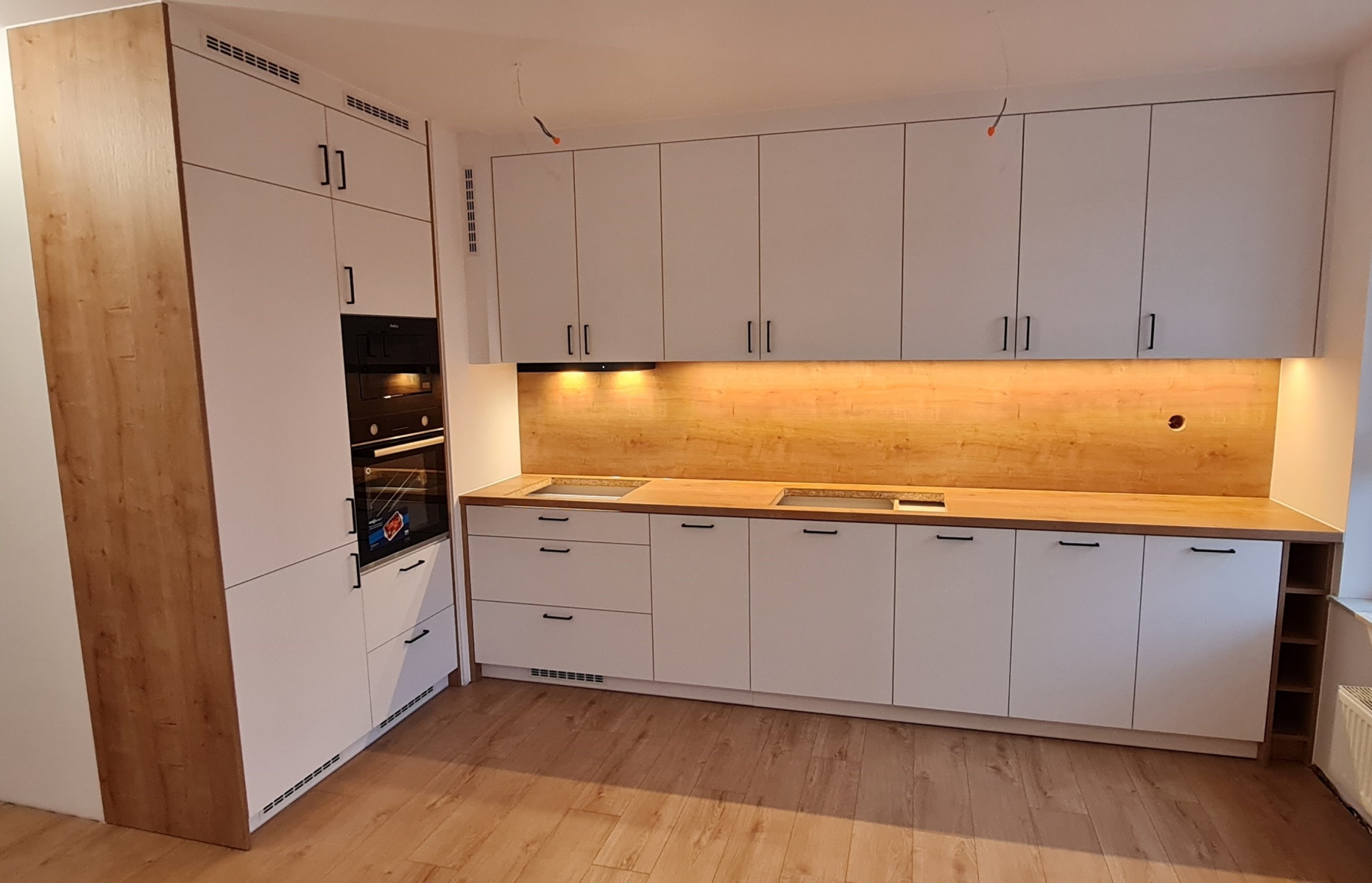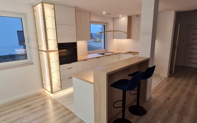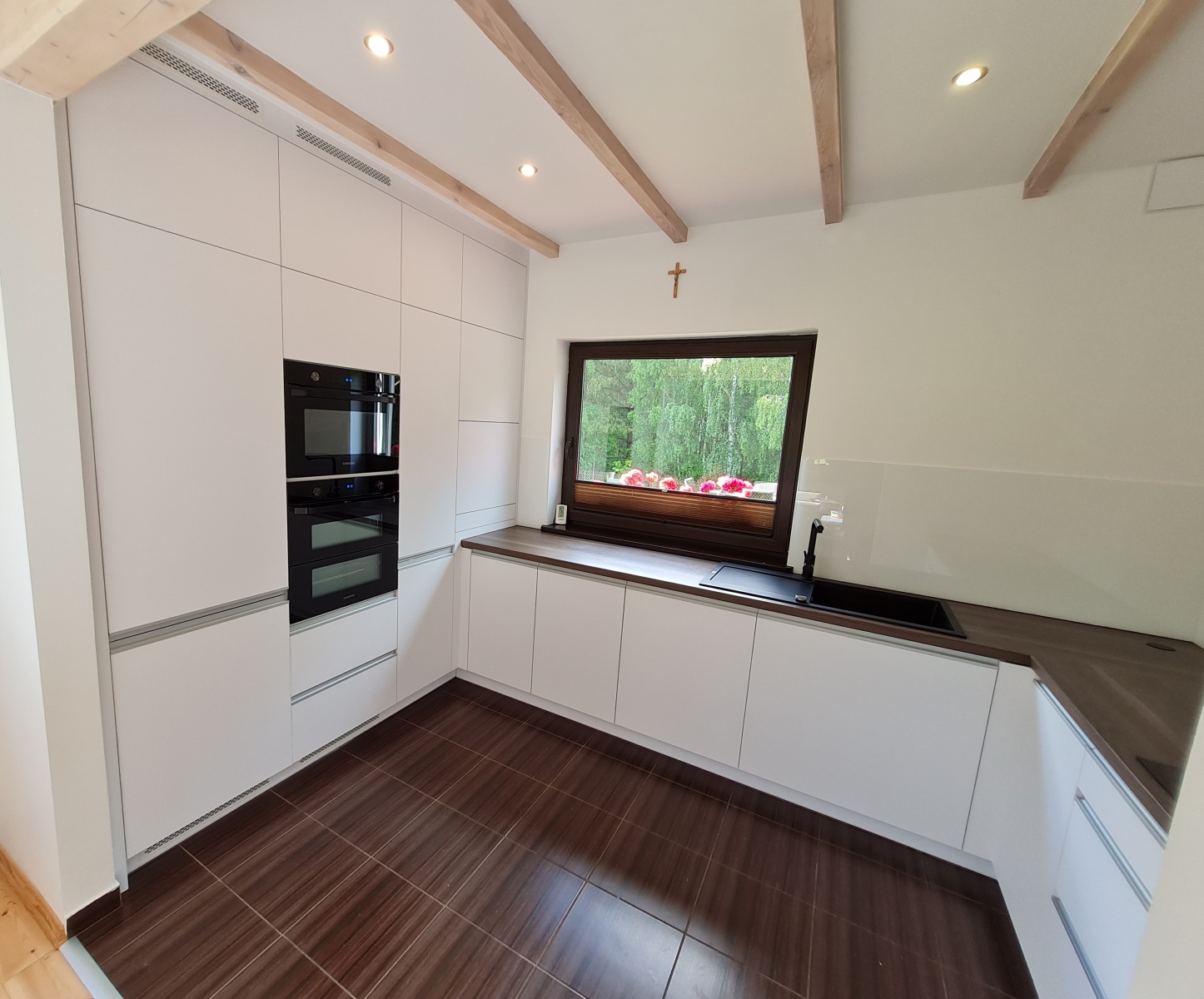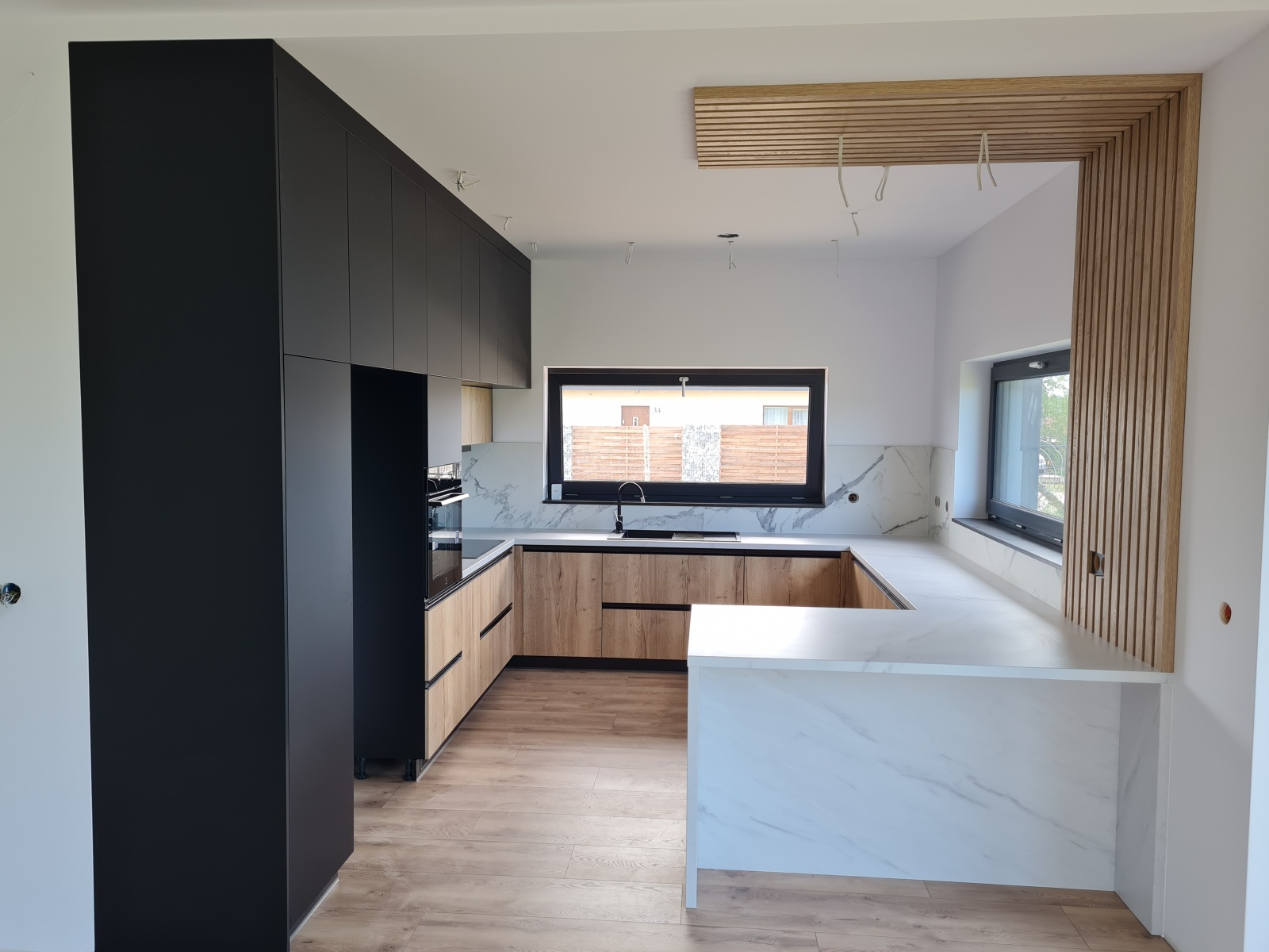 Wykonujemy zabudowy zarówno w wersjach klasycznych z wykorzystaniem frezowanych frontów z MDF, frontów fornirowanych i drewnianych, jak również zabudowy nowoczesne w dowolnej wybranej przez Państwa kolorystyce z palety RAL lub NCS. Dzięki nawiązaniu współpracy ze zdolnym ślusarzem z powodzeniem tworzymy również piękne surowe wnętrza w stylu loft.