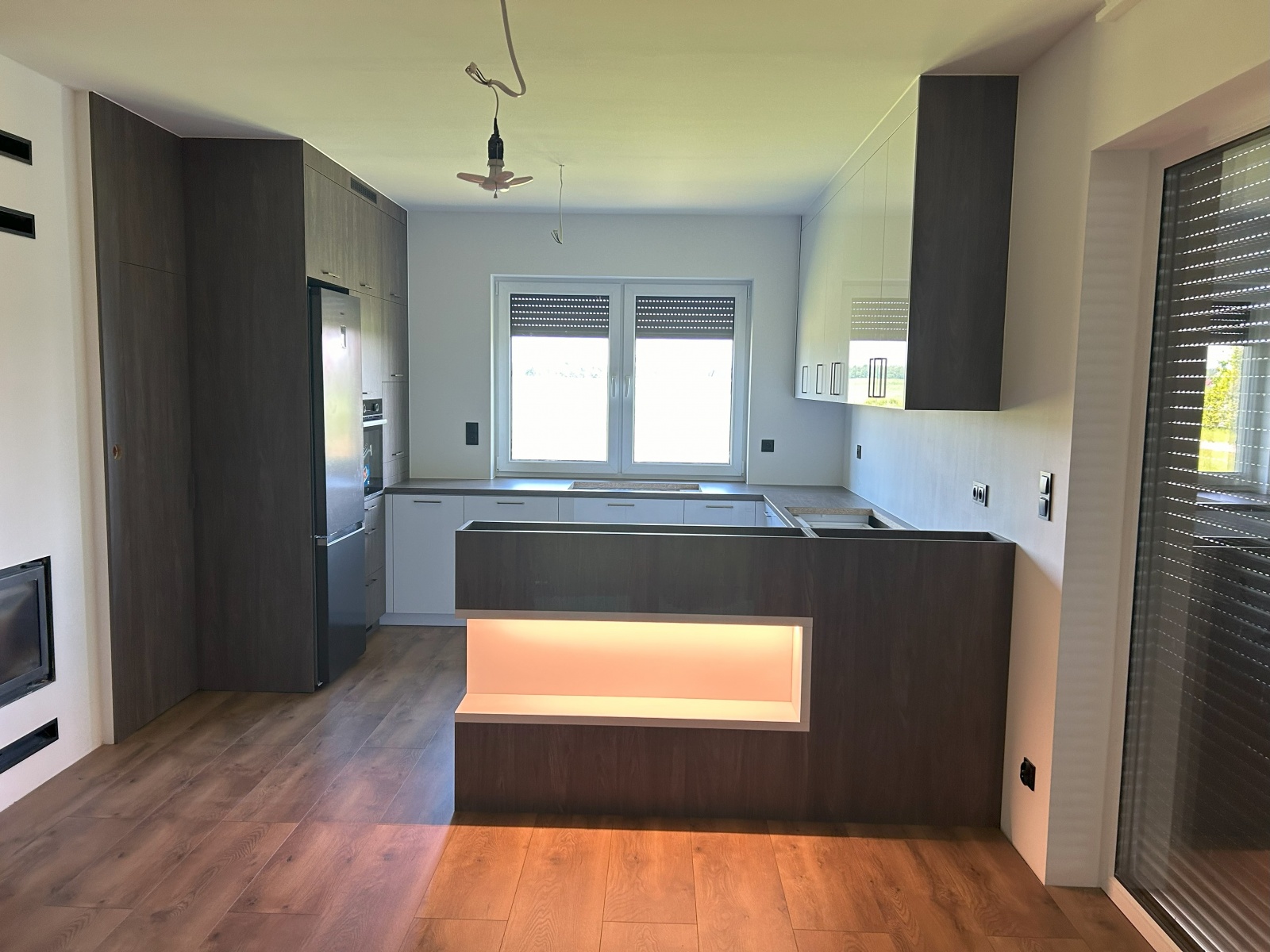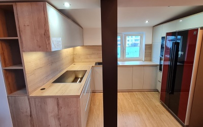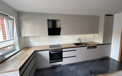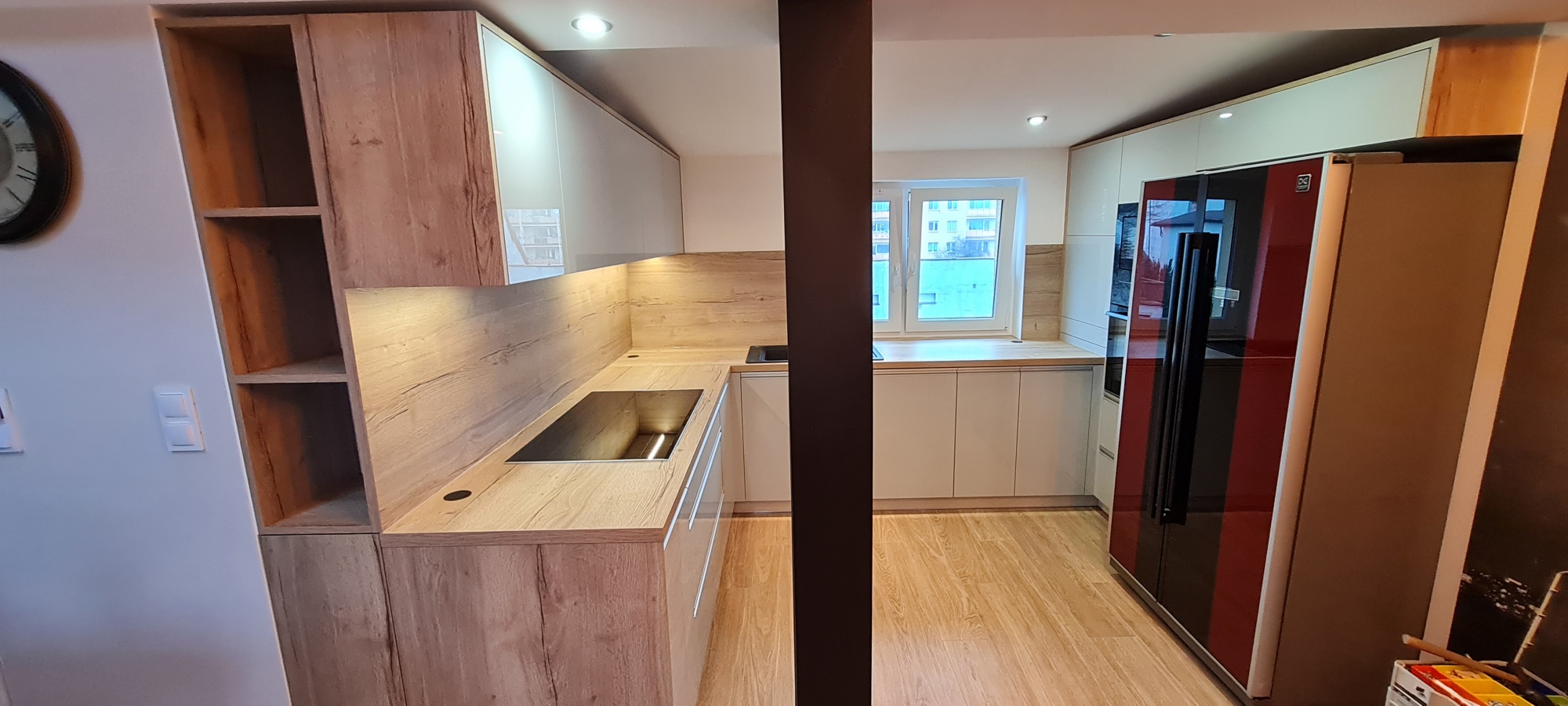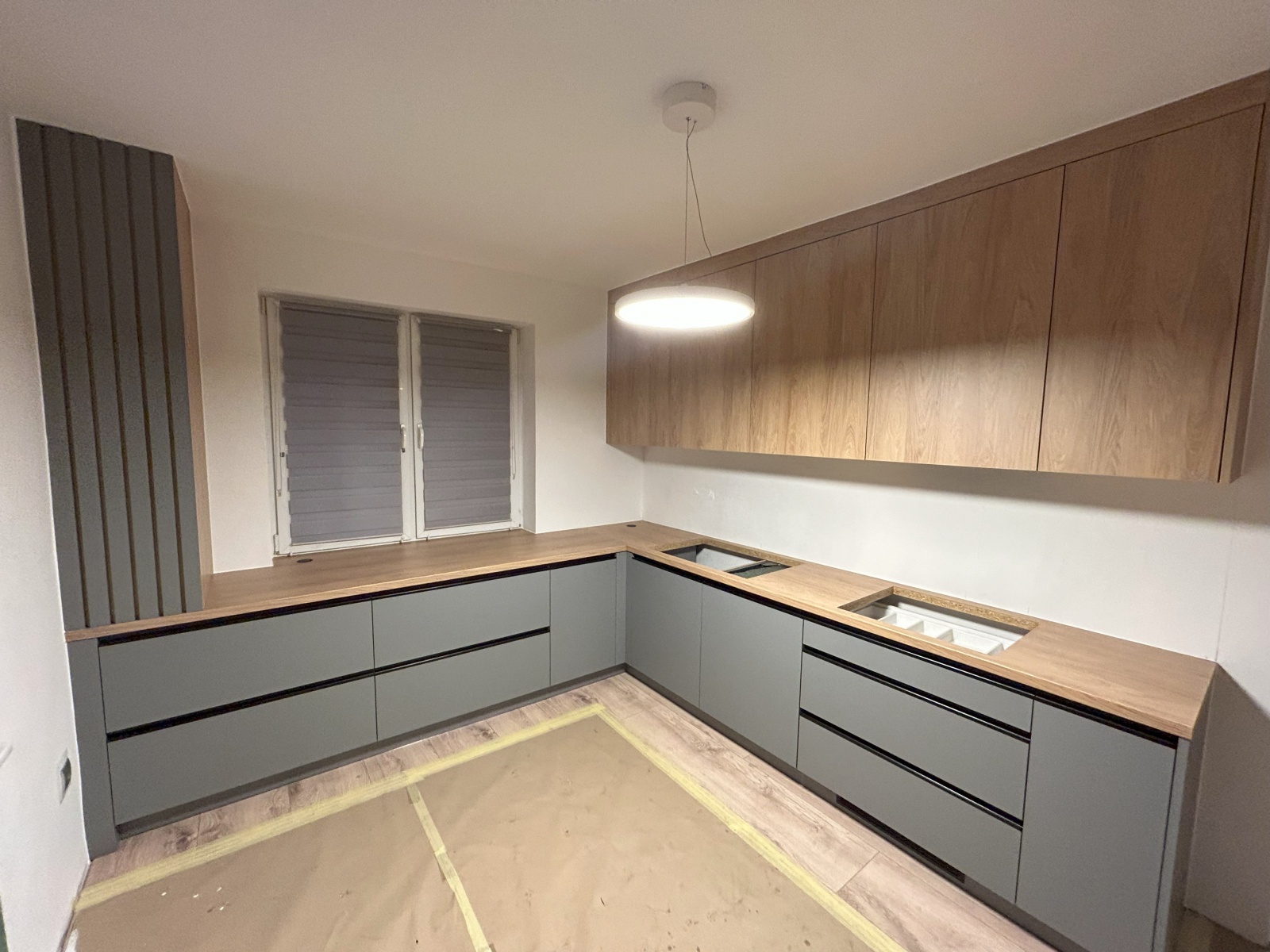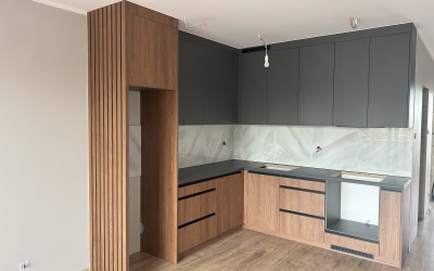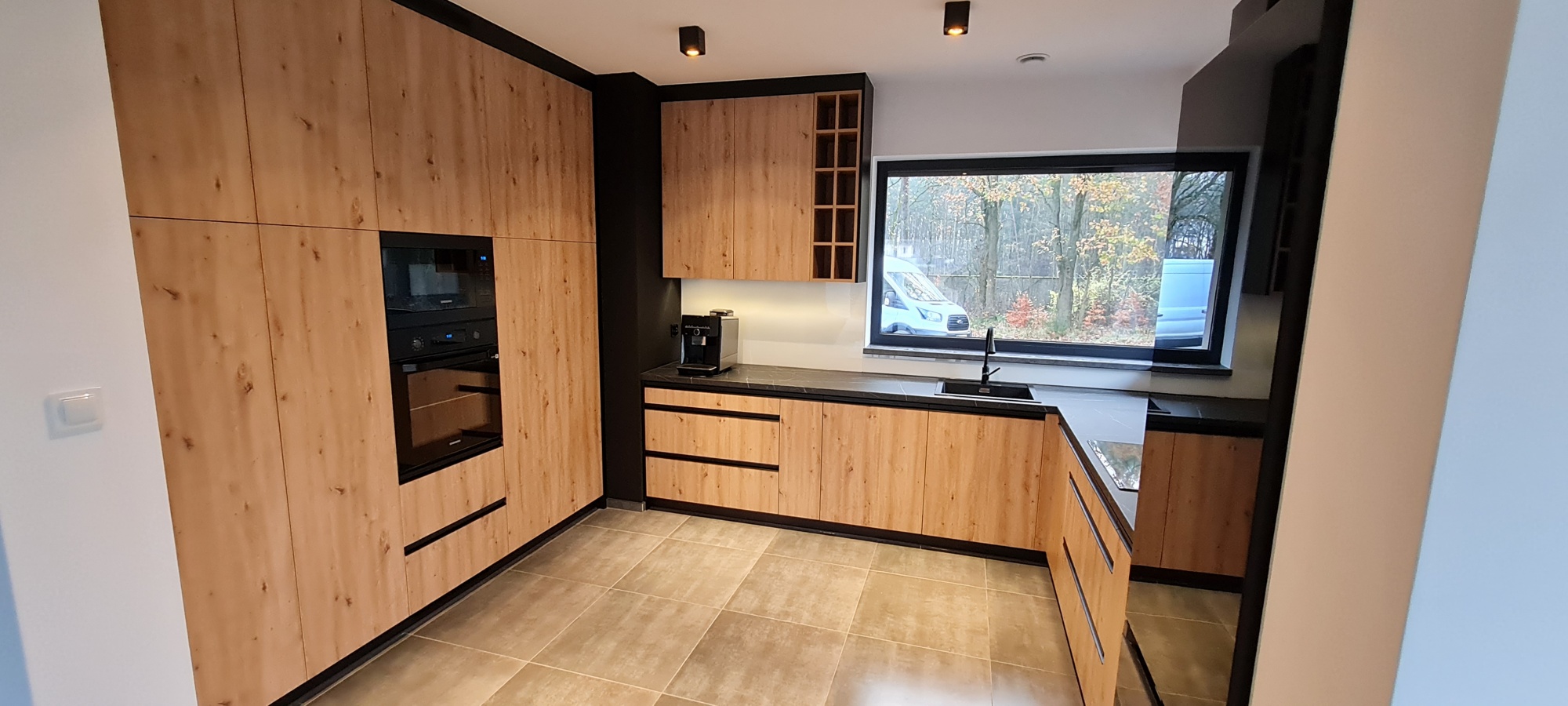 Wykonujemy zabudowy zarówno w wersjach klasycznych z wykorzystaniem frezowanych frontów z MDF, frontów fornirowanych i drewnianych, jak również zabudowy nowoczesne w dowolnej wybranej przez Państwa kolorystyce z palety RAL lub NCS. Dzięki nawiązaniu współpracy ze zdolnym ślusarzem z powodzeniem tworzymy również piękne surowe wnętrza w stylu loft.